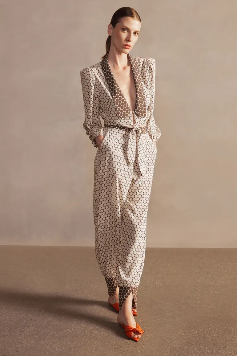 New Pois carrot pants have the vintage look of the Adriana Degreas collections. The different modeling is what gives the pants their charm. The pants can be combined with a blouse to give it a jumpsuit look, or you can wear it with a robe for a modern look.