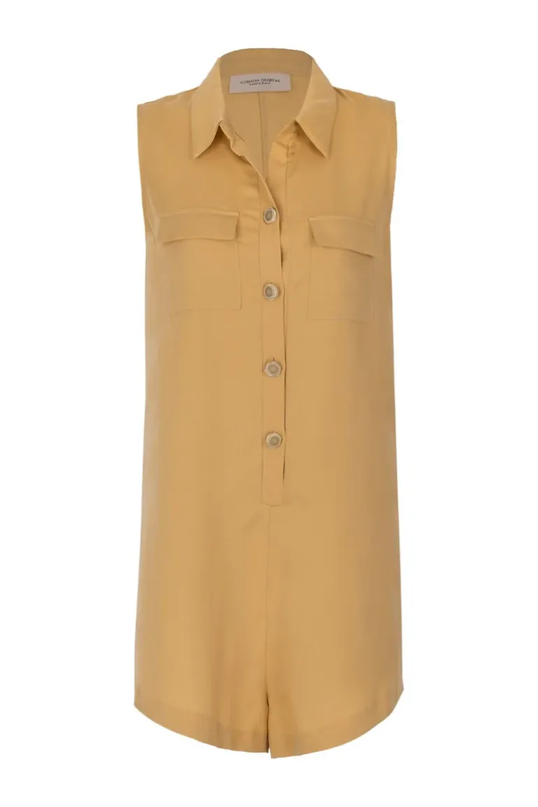 This fun and contemporary military-style Safari Solid Playsuit with Pockets is cut to a loose and relaxed fit that is essential for your summer wardrobe. Style the Safari Solid Playsuit with Pockets effortlessly with a simple basket bag and flat sandals after the beach.