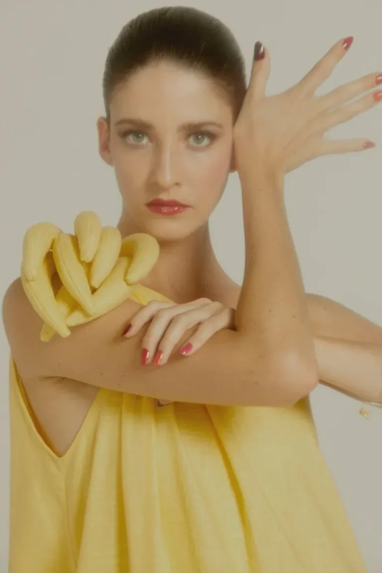 This breezy linen Banana One Shoulder Long Dress with Bananas Detail is essential for a very chic tropical summer wardrobe. Wear the Banana One Shoulder Long Dress with Bananas Detail with flat sandals and a banana hairstyle and make a glamorous impression by the poolside.