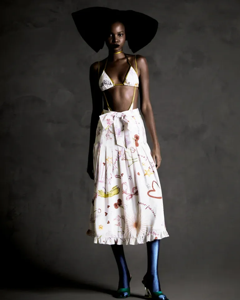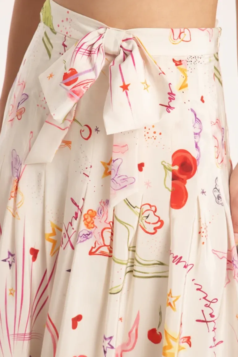 This long skirt with bow is made in Silk, and reflects a romantic style with a fun touch. Combine with sandals for festive occasions or even with sneakers for a modern and young look.