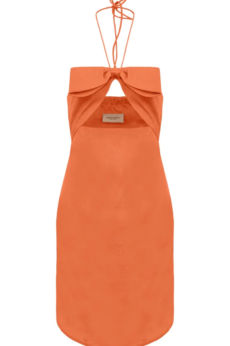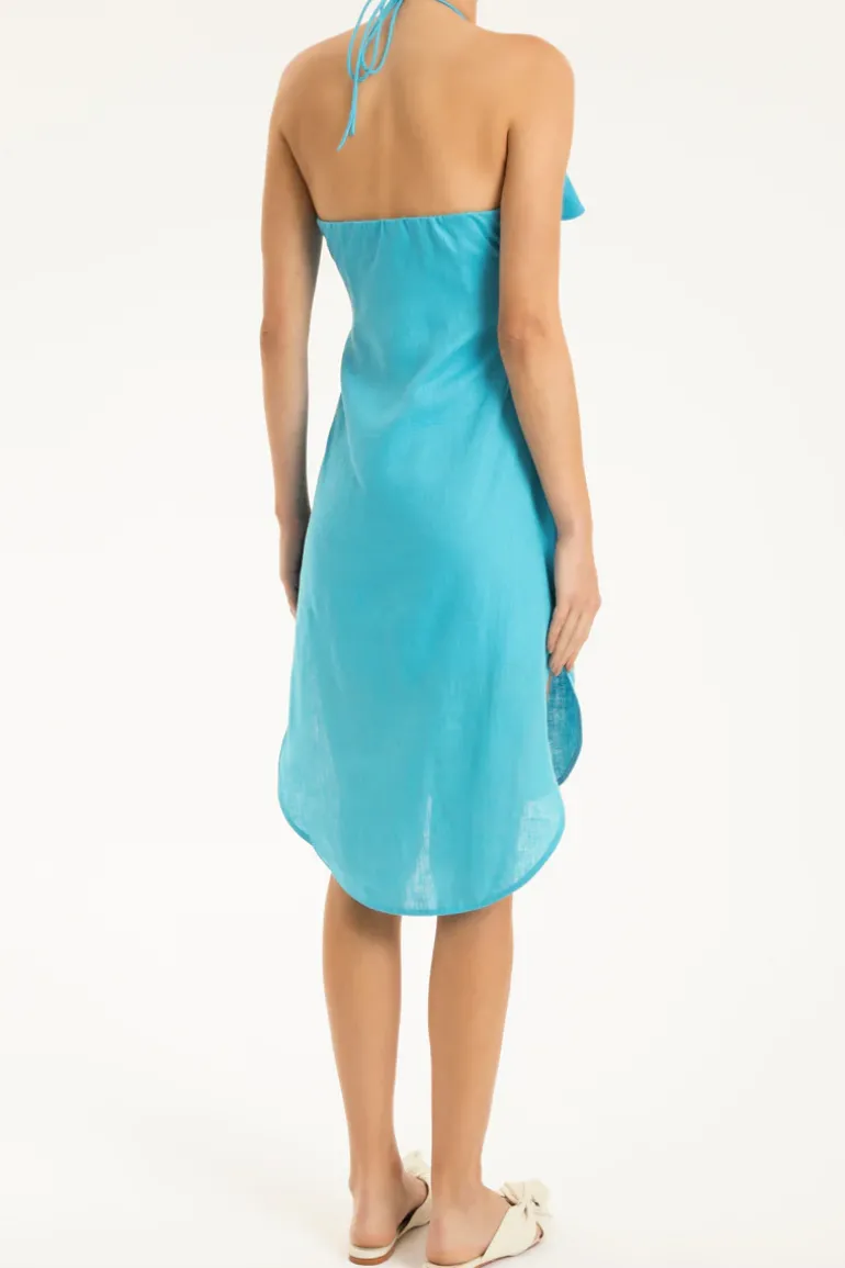 This long dress with neckline and bows is made of linen and can be used on different occasions. Combine the look with sandals and a small bag for a Saturday night out. Sports accessories like sneakers make the look modern and fresh.