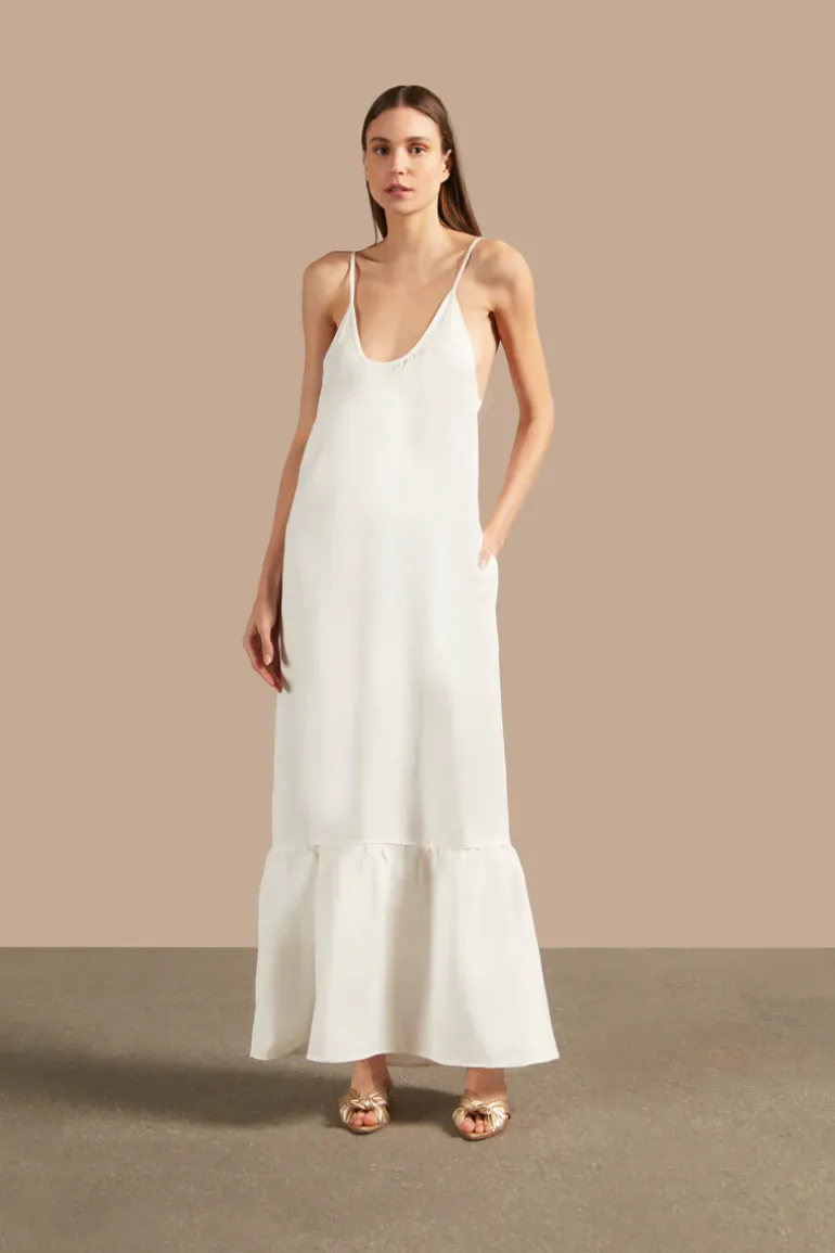 Long dresses with fluid silhouettes are a wardrobe essential. The Golden Age Solid Straps Long Dress from Adriana Degreas features thin straps and a striking V-back neckline adorned with elegant ball-shaped trims. Crafted from a breathable linen-viscose blend, its vintage-inspired design is perfect for late afternoon gatherings or evening soirées. Pair it with flat sandals and a beach bag for a laid-back look, or add statement accessories for a modern twist.