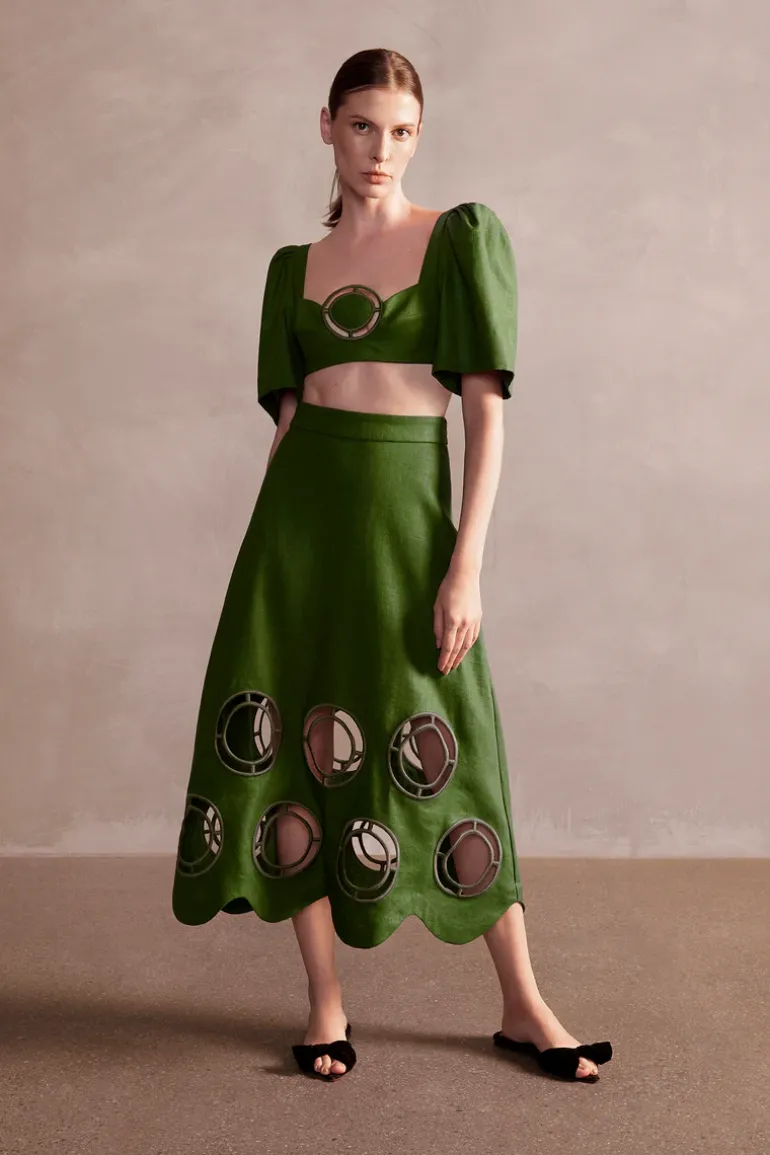 Adriana Degreas updated her statement resort-wear like this Grand Pois Midi Skirt. Create your own wardrobe language and wear the Grand Pois Midi Skirt for a poolside and beyond.