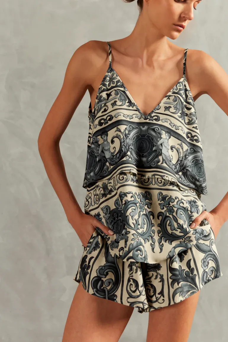 Irreverence and innovation are codes of Adriana Degreas’ collections. Inspired by Greek mythology, the HERA line brings a classic color palette, reaffirming the elegance always present in the brand’s creations. This Hera Blouse With Straps looks amazing with the coordinated pants for poolside drinks. We love the Hera Blouse With Straps with low heel sandals in the same shade for vintage chic style.