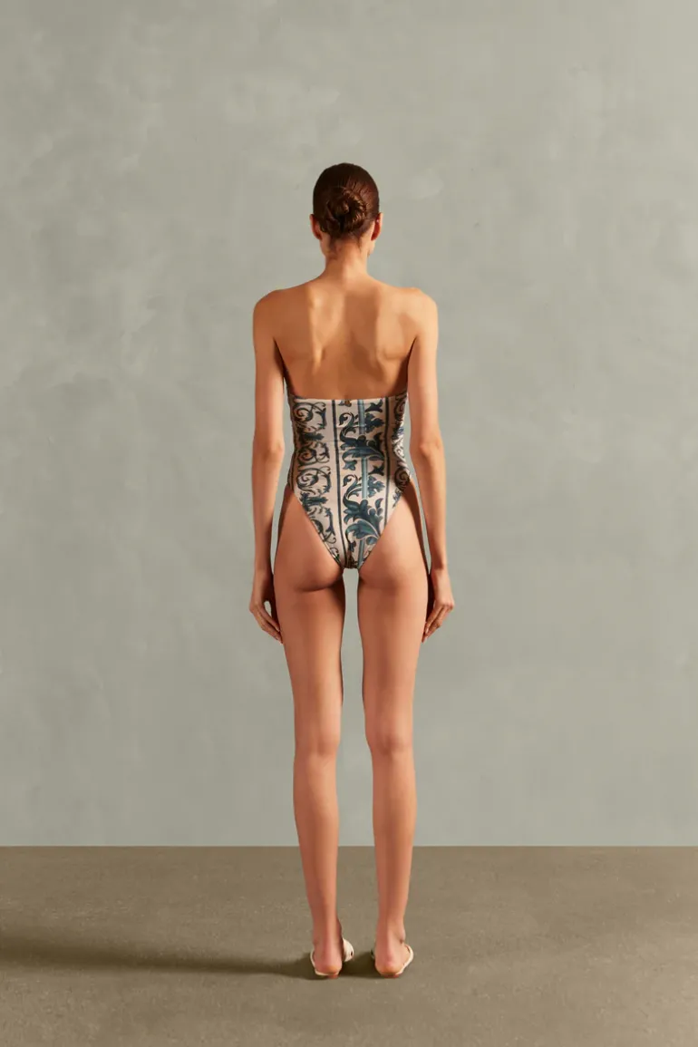 A classic model, Hera High-Leg Strapless Swimsuit from the Adriana Degreas brand, the strapless swimsuit appears reissued with a crossover detail and cutouts, making the piece relaxed and at the same time sophisticated. Finish the Hera High-Leg Strapless Swimsuit with coordinated outings by the pool for an Adriana Degreas vintage chic look, a second proposal would be to wear it as a bodysuit, add a pair of pantaloons with fluid modeling for a sophisticated and authentic proposal.