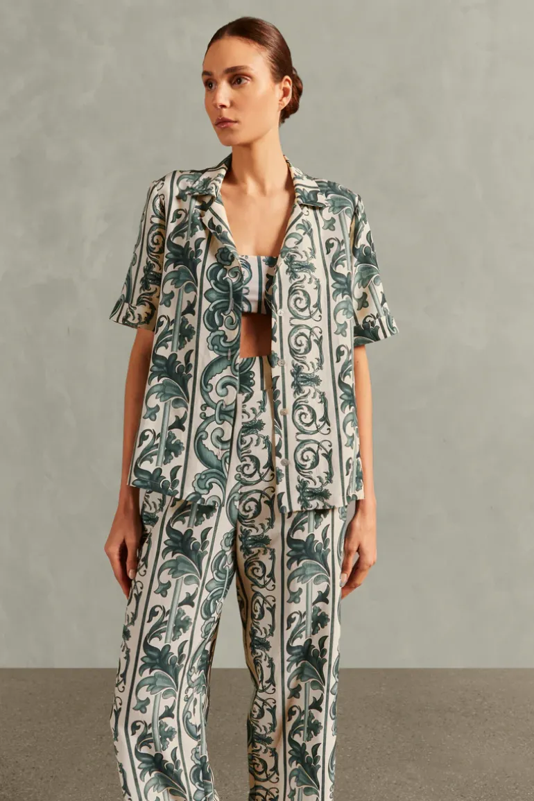For those looking for a cool and practical option, the Hera Short-Sleeved Shirt is the ideal choice. With a loose silhouette and natural fabric, this shirt can be worn with a bikini for a beach look or even with shorts with the coordinated print for a modern and urban look. Complement the Hera Short-Sleeved Shirt with metallic accessories like Adriana Degreas vintage chic style.