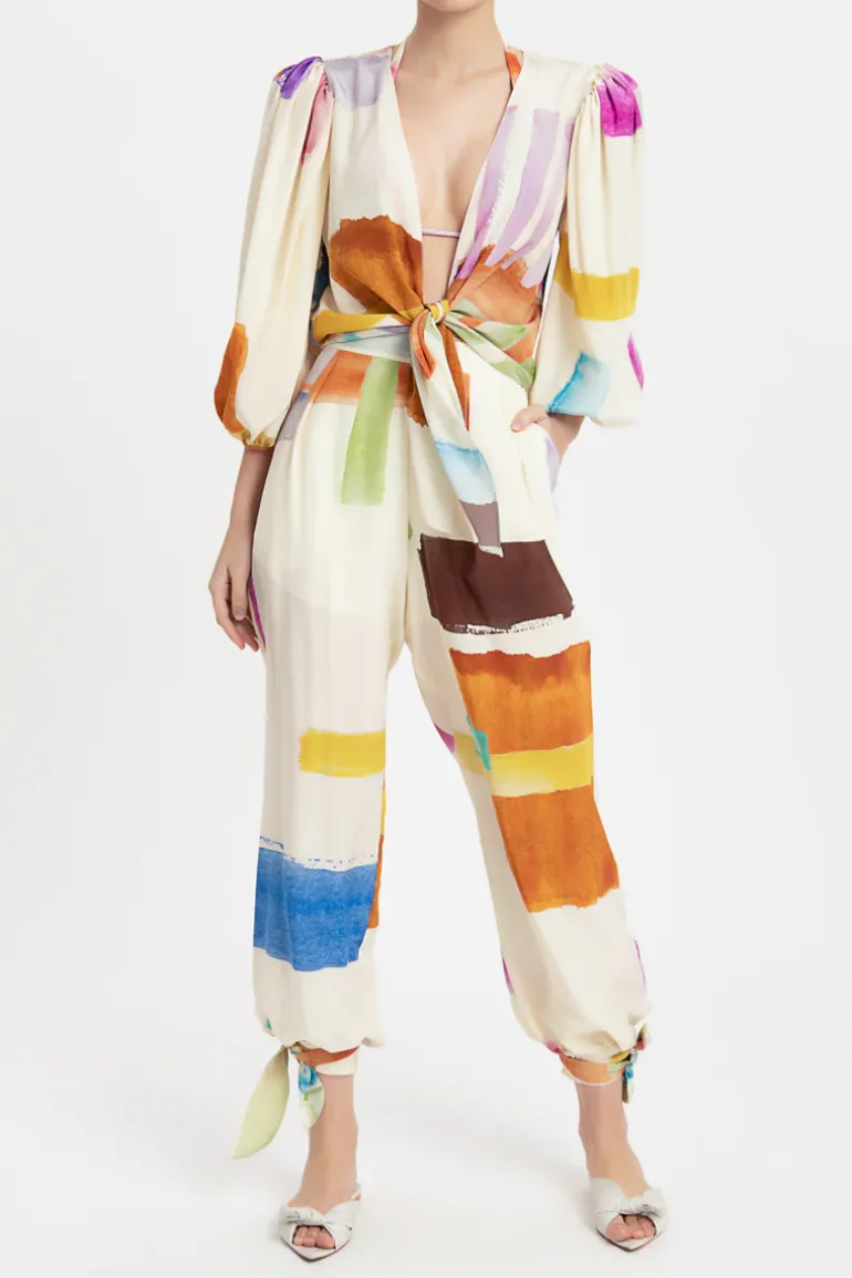 Crafted from silk, this Carrot Pants will make a luxe addition to your vacation edit. Wear the Illusion Carrot Pants with just a bikini top or with a shirt with the same print to give it a jumpsuit look.