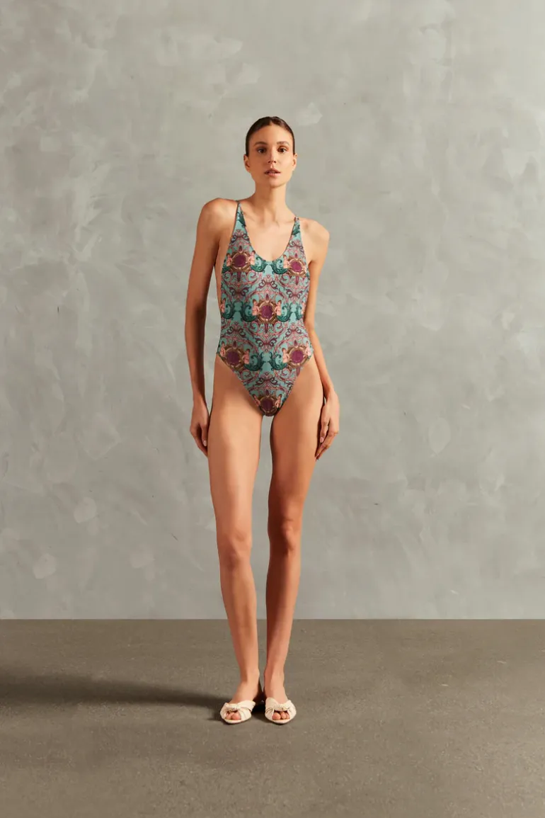 Le Sirenuse Side-Boob Swimsuit unites natural beauty with modern style. With a vintage hang gliding style reference modeling, this swimsuit is an authentic expression of femininity and fashion. Complement the Le Sirenuse Side-Boob Swimsuit with a cover-up to further elevate the seaside look.