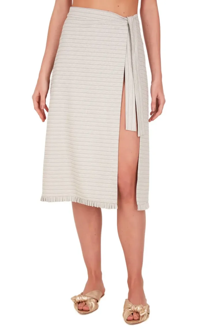 This practical Masque Pareo Skirt cover-up is made with stretch fabric and can be knotted over your swimsuit on your next vacation. Wear the Masque Pareo Skirt with flat sandals after the beach.