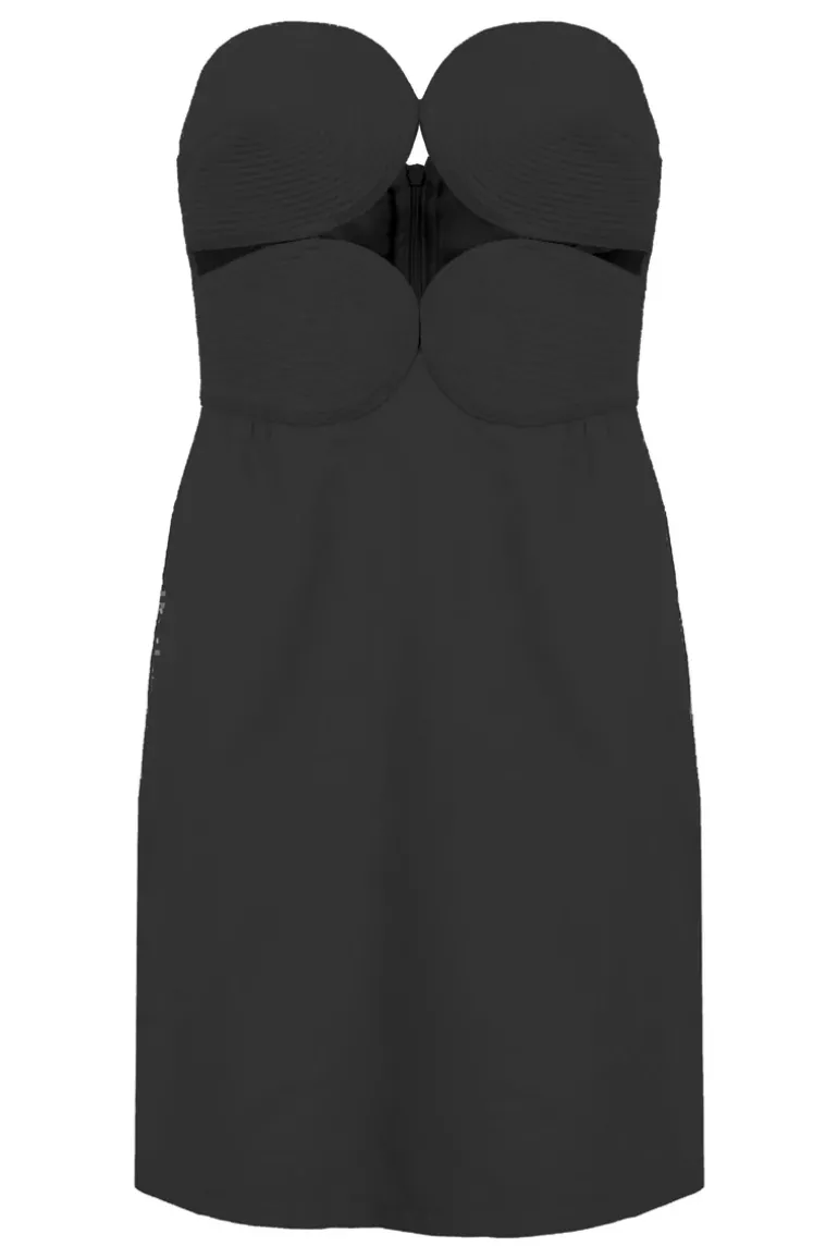 Inspired by surrealism, the matelasse dress is already an iconic and very elegant piece from Adriana Degreas´collections. The Matelasse Strapless Short Dress is crafted from cotton with cutout details. We love the Matelasse Strapless Short Dress with sandals and mini bag for glamurous evenings.
