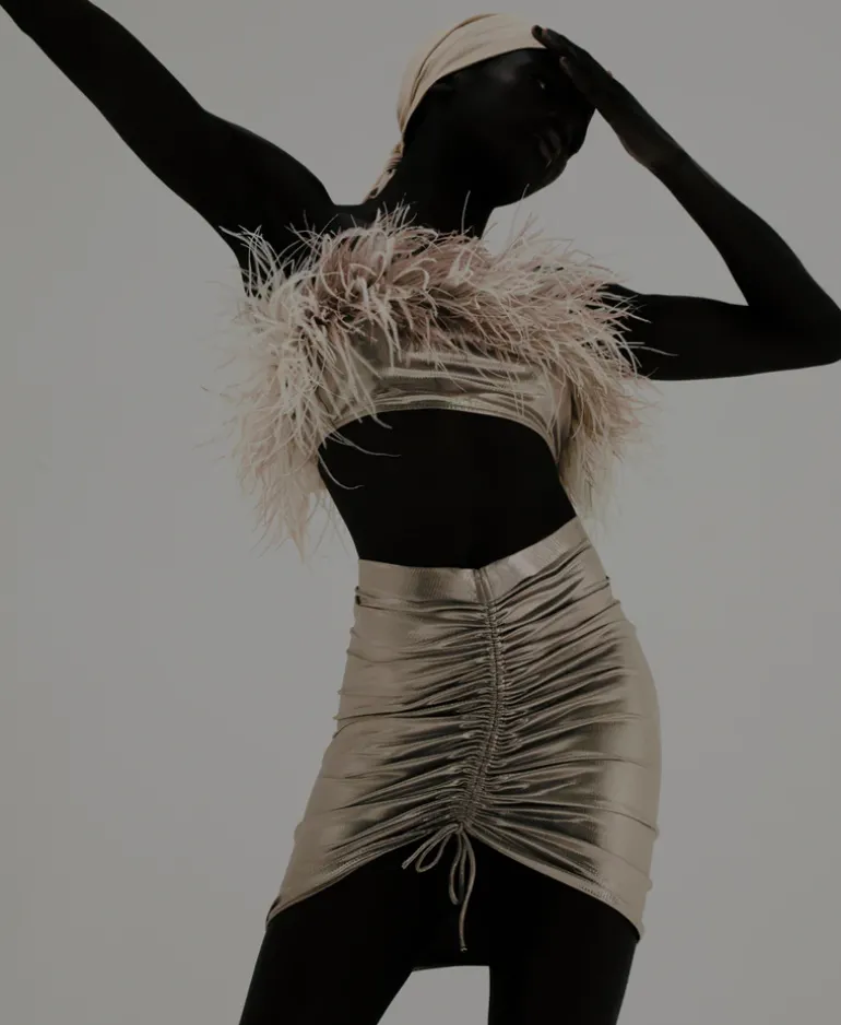 This short skirt is made of strech fabric and shaped with a high-rise waist for a feminine and vintage touch. We love it with a matching skirt and sandals for evening drinks.