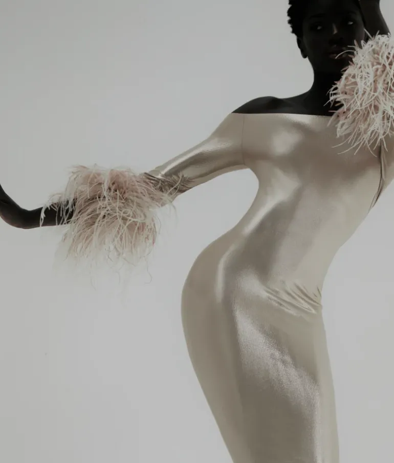 Feathers; Long Sleeves; Off The Shoulder;
