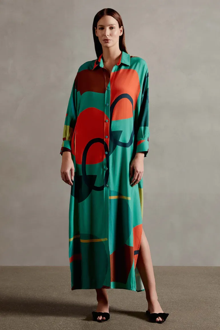 Inspired by men’s wardrobe, the Modernism Long Chemise Dress is a shirt-style dress crafted from lightweight fabric, perfect as a beach cover-up or for a casual city stroll. Style the Long Chemise Dress with a simple belt and a clutch bag for an effortlessly chic look.