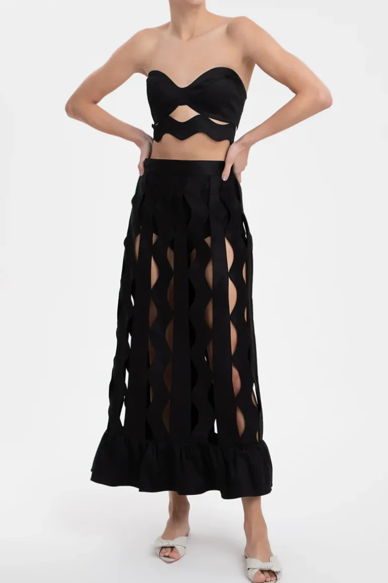 This Moves Strapless Top will look so chic with high-rise skirt or a pleated shorts. It is crafted from cotton with a cut-outs for a breezy mood. Wear the Moves Strapless Top with a matching shorts or a midi skirt for a charming special occasion look.