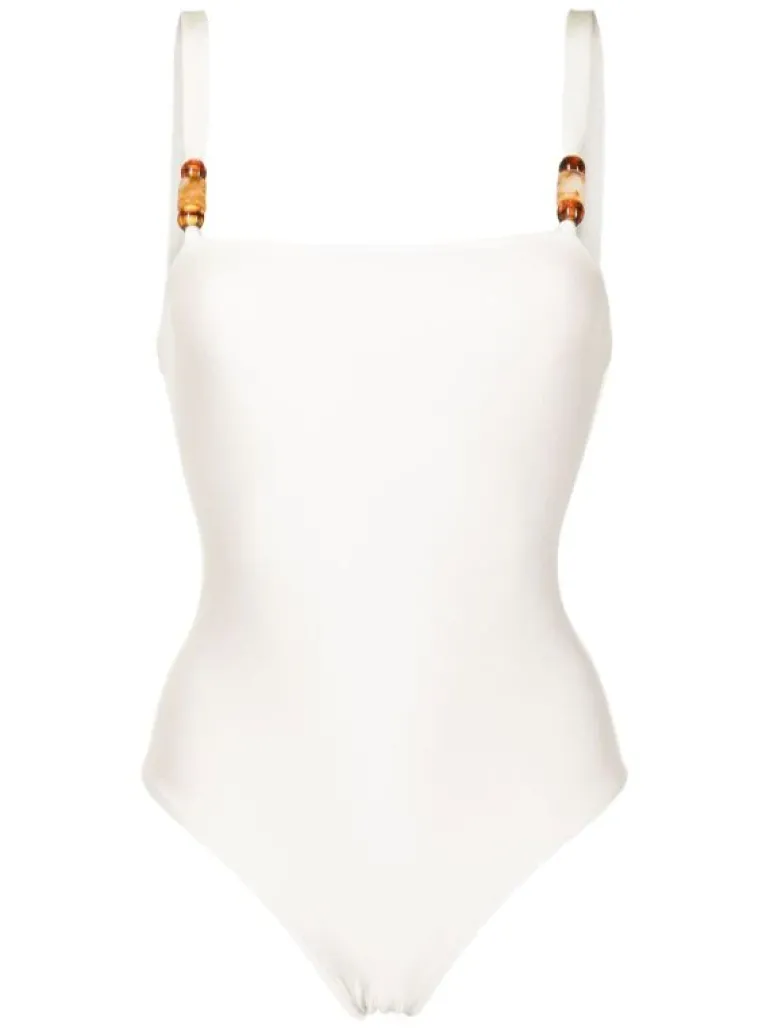 The classic Straps Swimsuit is a sophisticated look. Wear it with a cover up to hang out by the pool.
