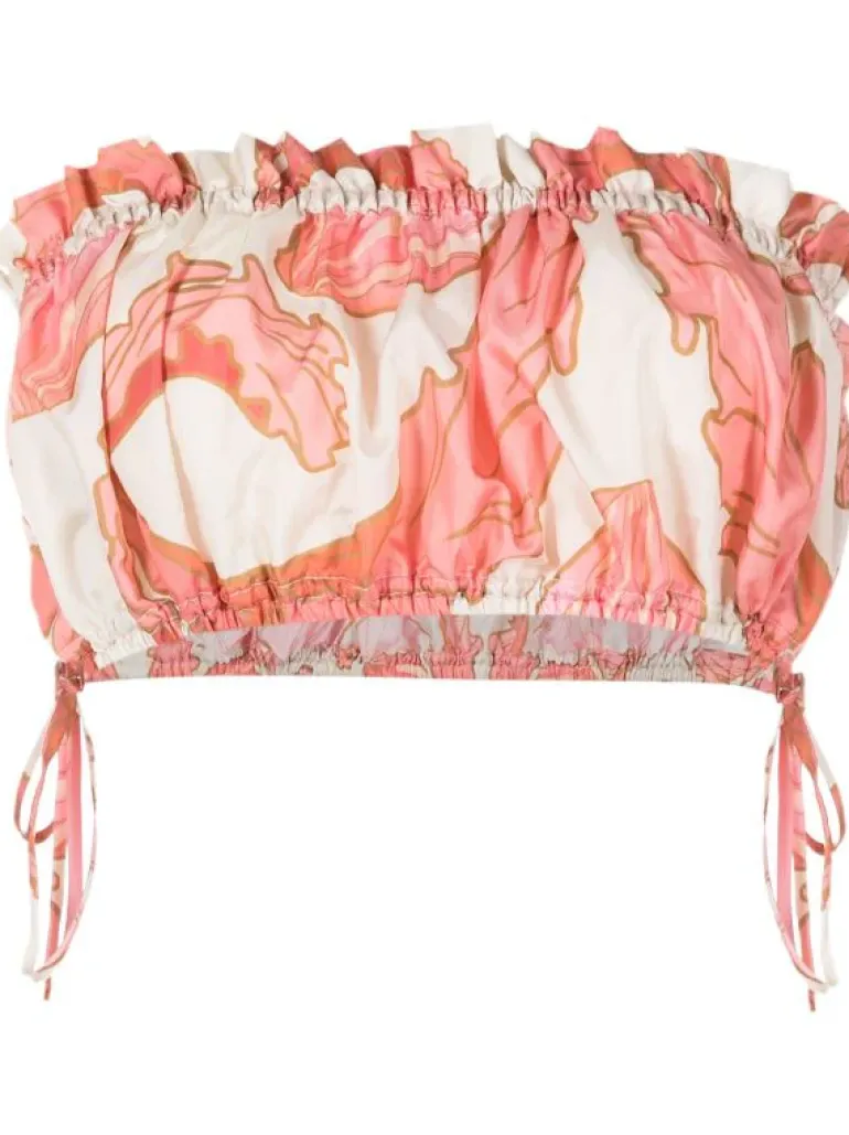 The Seashell Frill Crop Top is a fresh and young piece that can be worn in several ways. Edit the look with a shirt and pants in the same print for a more discreet option in the city. We love the Seashell Frill Crop Top with a skirt and low heel al mare sandals.