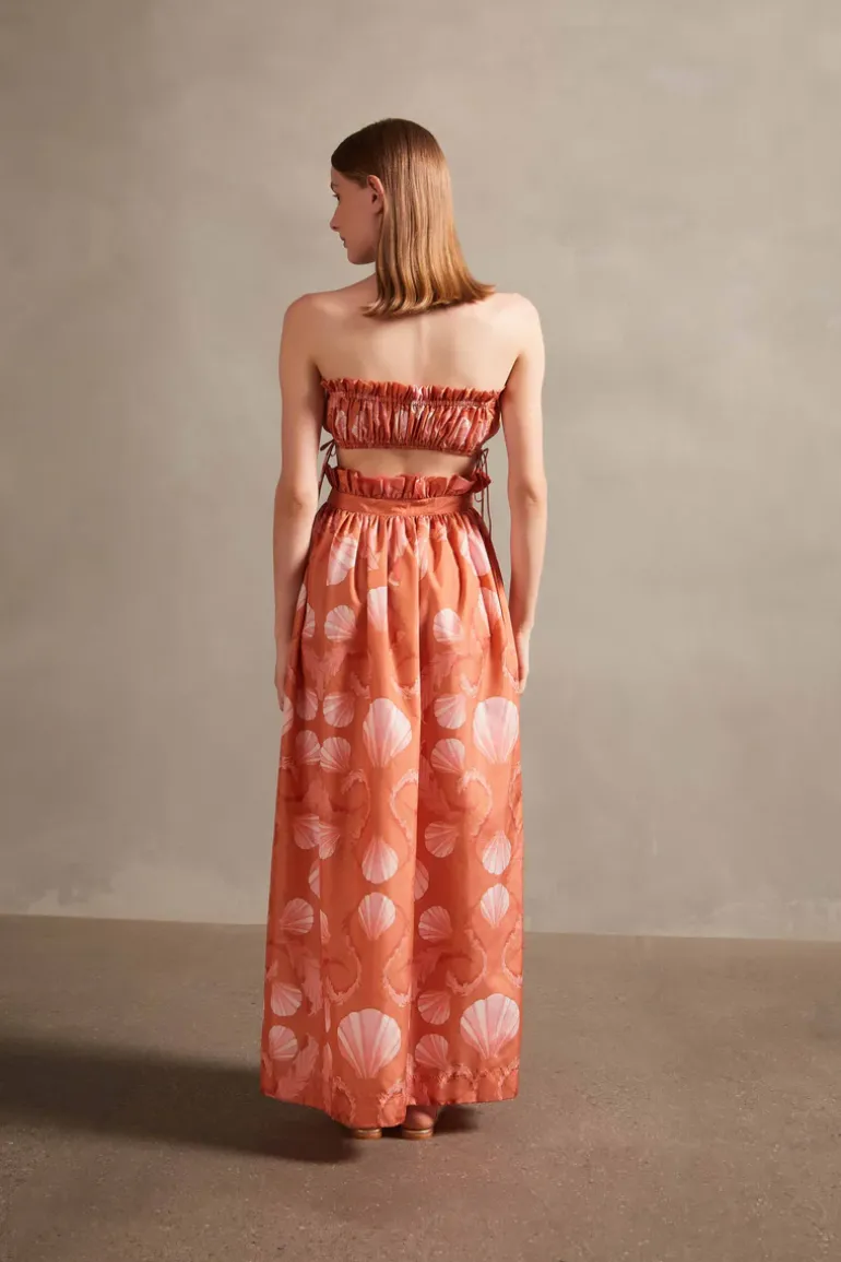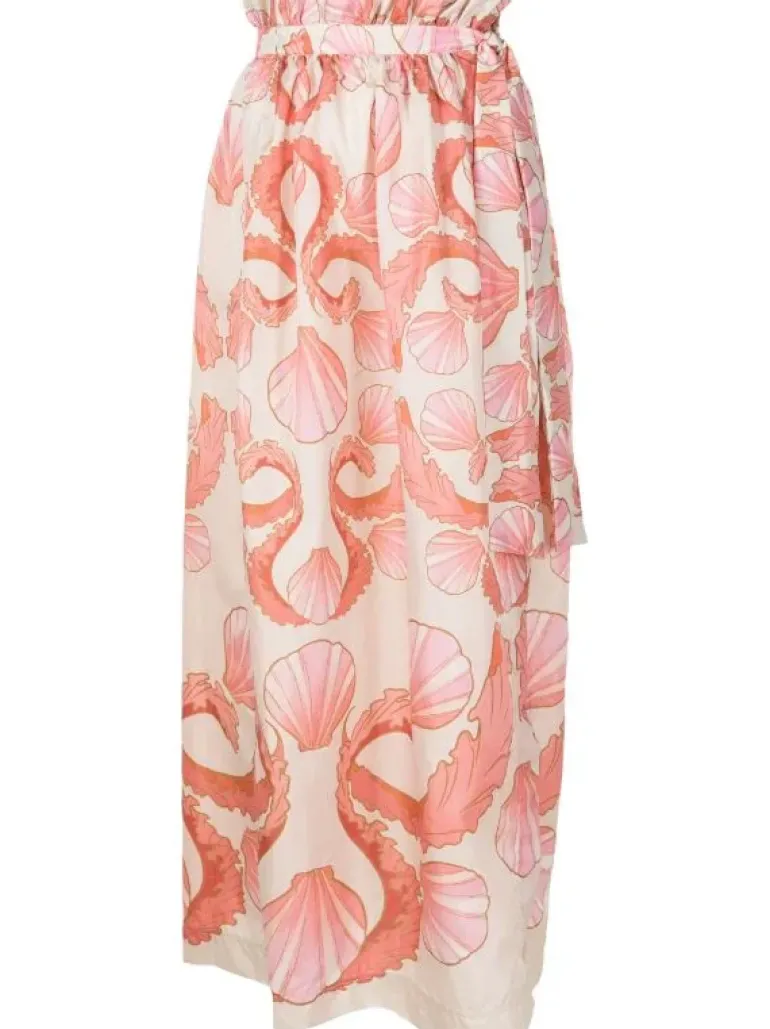 This Seashell Long Skirt is the perfect choice for a chic and unpretentious look. Made from polyamide, it has a ruffle, self-tie and side opening that adds extra charm and femininity to the piece. Finish the Seashell Long Skirt with a coordinated shirt or top for a casual look.