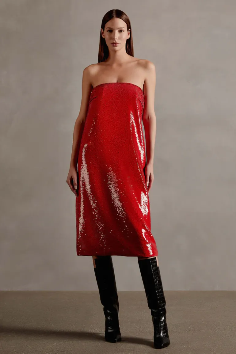 Sequins, Midi, Strapless.