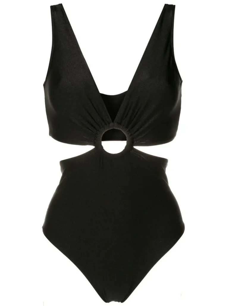 This swimsuit with hoop can be worn with a cover up and vintage sunglasses, during the day by the pool.