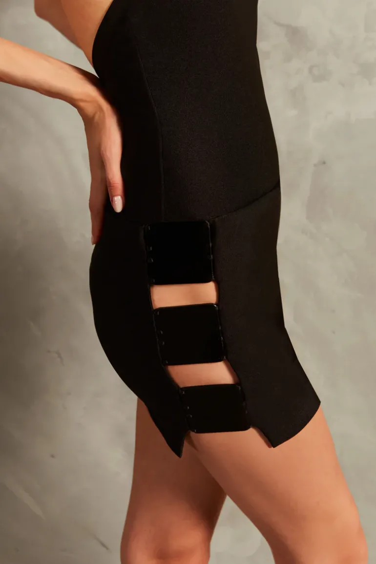 The Solid Inamorata Cut-Out Mini Skirt combines practicality and elegance, adding a special touch to your wardrobe. Wear the Solid Inamorata Cut-Out Mini Skirt as a cover-up over bikinis or swimsuits for a stylish poolside lunch or a stroll along the beach.