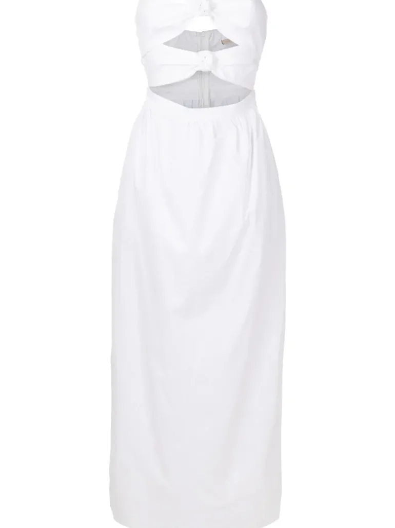 Naturally elegant fabrics like cotton make pieces relaxed and sophisticated at the same time. This Solid Strapless Double-Knot Long Dress is a reinterpretation inspired by bikinis and swimsuits from Adriana Degreas’ collections. The double knots make the piece even more elegant and unusual with a summer vibe. Pair the Solid Strapless Double-Knot Long Dress with sandals and a small bag for beach or city occasions.