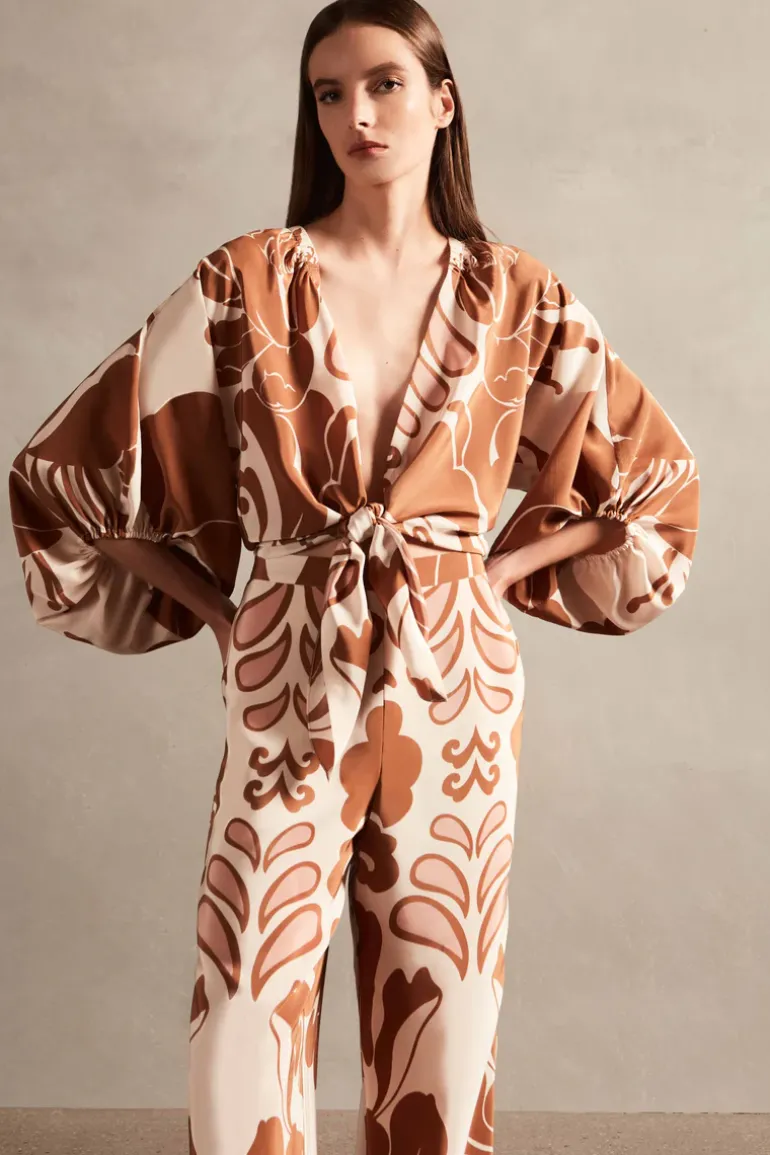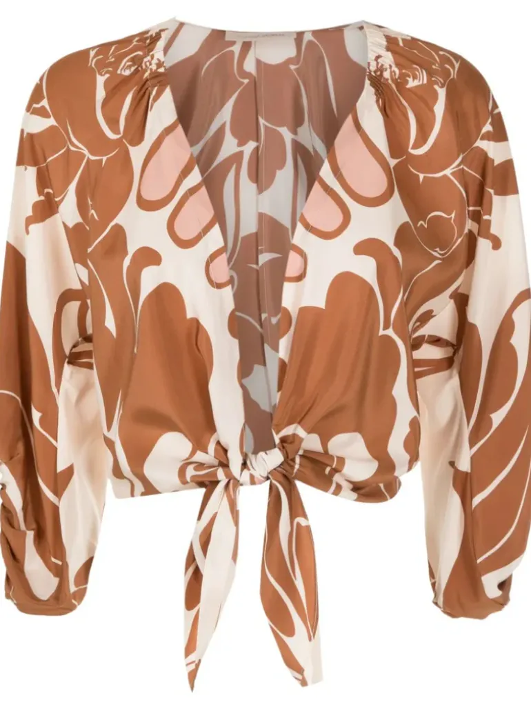 This Spray Of Flower Voluminous Sleeves Shirt design exudes romance with its long puffed sleeves and plunging neckline. With a bold touch, the tying adds extra charm to the piece. Wear the Spray Of Flower Voluminous Sleeves Shirt with a midi skirt for an elegant contrast or with trousers for a sophisticated, relaxed look.