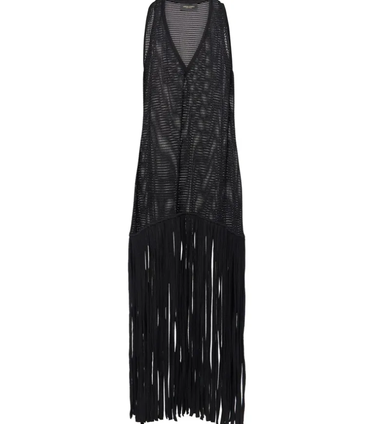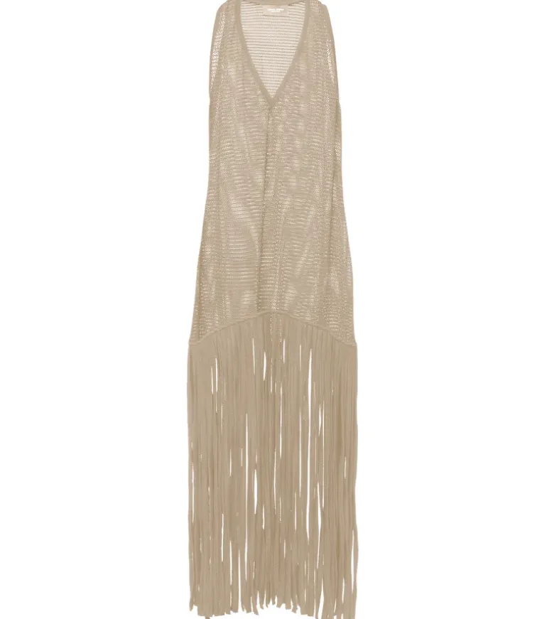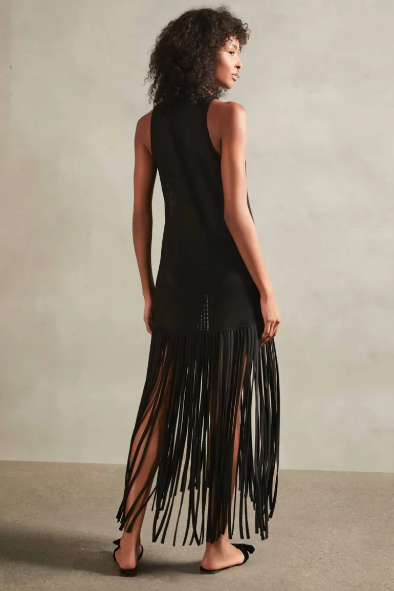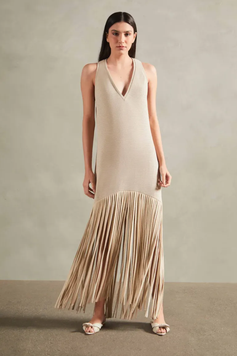 The Knit Long Dress with Fringes takes on a contemporary look in the Tricot collection, these fringe details make the piece more delicate, and can be worn in many ways, for urban looks with stylish compositions. Combine the Knit Long Dress with Fringes with black flat sandals and have a bold and sophisticated look.