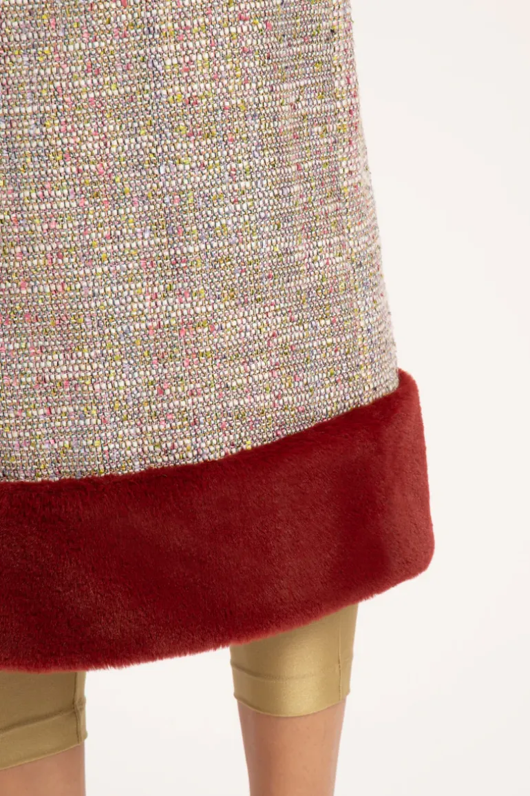 The real meaning of classic and sophisticated, Tweed gains modern visual with golden details when combined with metallic swimwear from the winter 2022 collection. AD style: Wear this midi skirt with sandals for night time occasions or even with sneakers for a casual look during the day.