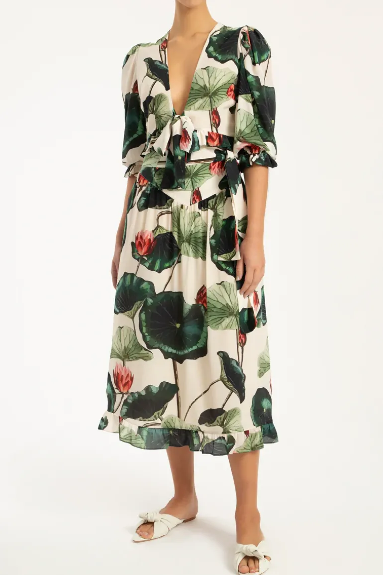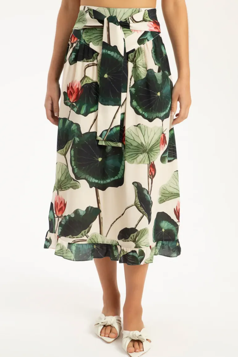 Classic and sophisticated fabrics such as polyester are present in the Resort 23 collection in timeless pieces like this Midi Skirt With Sash. Pair the Victoria Regia Midi Skirt With Sash with a shirt in the same print for an effortless chic style and wear on the beach or in the city. Style tip: accessories such as coordinated bags and sandals give you a fresh, summery look.